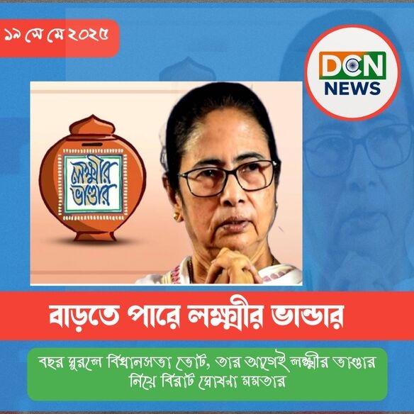 রিপোর্ট:ডাবগ্রাম-ফুলবাড়ি, ২১ মে ২০২৫ | প্রতিবেদকঃ বাবণ দাস, DCN NEWS | আগামী বছরেই রাজ্যে বিধানসভা নির্বাচন। তার আগেই রাজ্য সরকারের অন্যতম জনপ্রিয় প্রকল্প লক্ষ্মীর ভাণ্ডার নিয়ে বড় ঘোষণা করলেন মুখ্যমন্ত্রী মমতা বন্দ্যোপাধ্যায়। উত্তরবঙ্গ সফরের সময় ডাবগ্রাম-ফুলবাড়ির প্রশাসনিক সভামঞ্চ থেকে তিনি বলেন,
